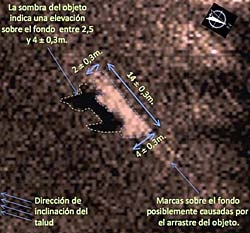 The size and shape of the target indicate that this target is the likely resting place of the crashed aircraft and plans are underway to mobilise an ROV to take a close look.