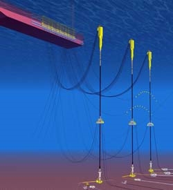 The aim of such a system is to provide real time positions of the towers and activate an alarm in case of unusual movement. The three 1300-meter-high riser towers, located 200m away from the barge are mounted with MPT319/DT transponders at the top, 50m below the surface.