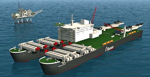 Pieter Schelte will be one of the most advanced construction vessels in operation, and is due to enter service in 2011. With the U-shaped slot at the bow, the vessel can position itself around a platform jacket prior to the removal process. For field abandonment/lifting operations, the vessel will have a capacity to handle topsides of 48,000 metric tons and jackets up to 25,000 metric tons. In pipe laying mode, with a tension capacity of 1,500 (upgradeable to 2,000) metric tons, the vessel will by far outstrip the existing global fleet.