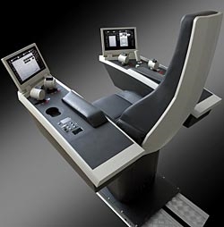 "K-Master consolidates the traditional five or six meter bridge console into literally one operator's chair, which houses integrated multiple computer consoles in the arm rests and touch-screens with split-screen interfaces. Total ship operation takes place from this chair, with the main information displays close to the seated operator, making the intense nature of ship operation on the aft bridge a more comfortable and less stressful situation," says Thor Hukkelås, Chief Engineer and project head for the K-Master.
