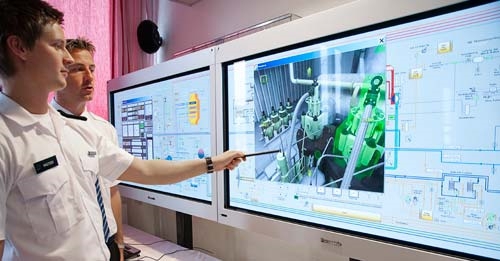 As part of the upgrade, the existing engine room simulator will be extended to include an additional full mission engine room simulator featuring KONGSBERG's Big View, which is a software based mimic panel with interactive touch screen and pop-up windows showing a 3D visual engine room to provide ultimate system understanding. The system also includes a control room with hardware consoles with touch panels, in addition to a main switchboard with interchangeable switchboards. The new simulator system from KONGSBERG offers unique flexibility, allowing the school to easily change from a diesel electric cruise ship model to a VLCC MAN B&W MC90-V model for different training exercises.