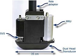 The system's splash protected deck unit is designed to be deployed on small vessels like dinghies and jet skis. The deck unit operates on 24 V power supply with only 40 W consumption and connects to the operator's laptop computer. The wet-end consists of an integrated mounting for the newly designed dual transducer head and all ancillary sensors. It can be pre-calibrated, allowing for fast installation on the smallest boats of opportunity, ensuring the user spends time on the water, getting the survey done.