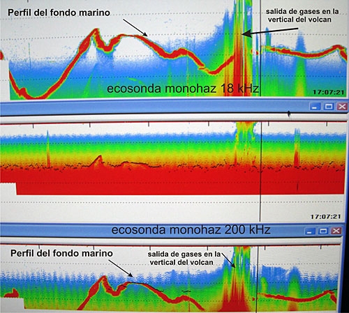 After the volcano was located, the EM 710 was used to measure dimensions such as cone height from the bottom and diameter. The IEO team compared this data with a dataset from the same area acquired on board R/V Hespérides using the Kongsberg EM 12 in 1998, in order to calculate how much the volcano had risen.