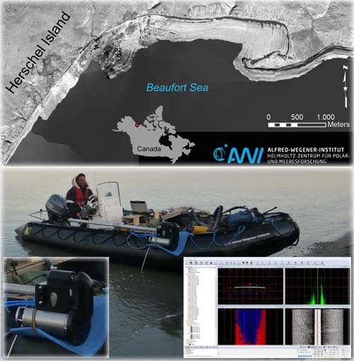 Back in 2012, the Alfred Wegener Institute Helmholtz Centre for Polar and Marine Research (AWI) began assessing the pace of coastal erosion and the nature of sediment and organic matter transfer in nearshore areas of the southern Canadian Beaufort Sea. Coastal dynamics on arctic coasts are highly seasonal: ice is present from October to late June, thus the coast is armoured against wave erosion. In the short open-water season the coast is subject to the combined effects of mechanical and thermal processes resulting in high erosion rates along ice-rich permafrost coasts, such as the western Canadian Arctic. Current estimates show that there is about twice as much carbon stored in permafrost as in the atmosphere. Of special interest is the potential climate feedback triggered by carbon release into the nearshore zone by coastal erosion, in a region that according to many climate change models will experience disproportionate warming. A portion of the released carbon is deposited on the continental shelf, yet the nearshore dynamics and the possibility of sequestration in shallow waters remains an open question. Within the framework of the Coastal Permafrost Erosion research project (COPER), AWI scientists began investigating both the terrestrial coastal dynamics, as well as assessing the fate of sediments and carbon released into the nearshore.