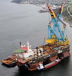 The Saipem 7000 was conceived in the mid-1980s as a multipurpose offshore oil platform installation vessel that would be able to install very large oil production platform decks (known as integrated decks) as well as the decks' supporting structures (known as jackets) using its two very large fully revolving cranes. It is also able to support offshore completion of the platform by providing hotel and workshop facilities for large construction crews. The vessel's size and semi-submersible form allow it to operate in worse weather conditions than smaller, conventionally shaped vessels.