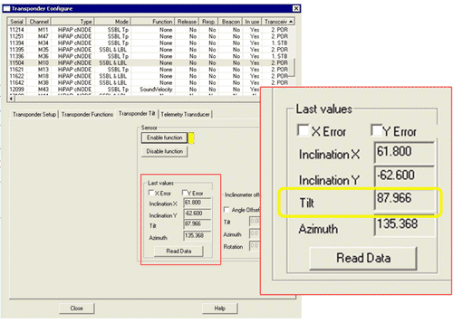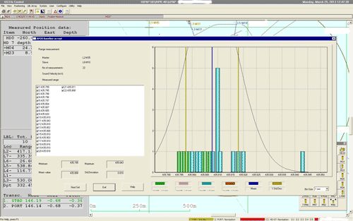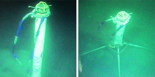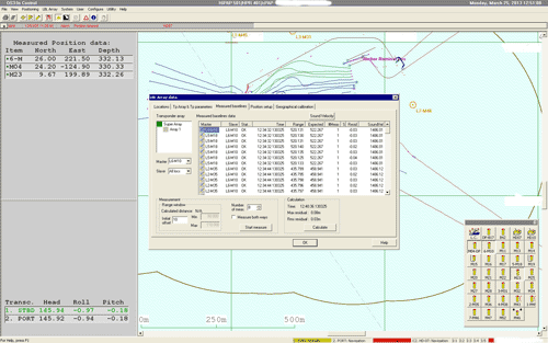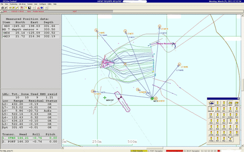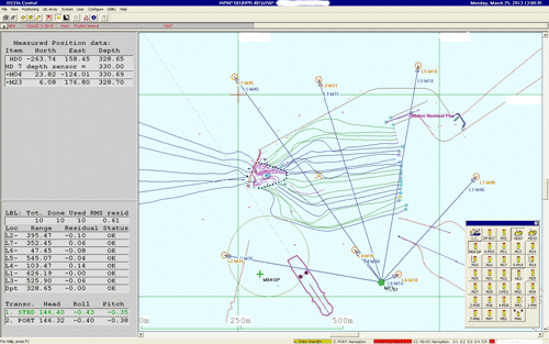 All cNODE® transponders have a built-in tilt sensor, which is particularly useful in LBL operations. Here we have an example from an offshore field where mattresses are being installed in water depth of 330m. The ROV is using a cPAP® subsea transceiver and a Long Base Line array of 7 cNODE® transponders for high accuracy navigation.