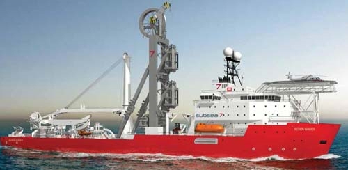 Six 550-tonne laying tension capacity pipelayers will be built at IHC Merwede in The Netherlands for delivery in 2015 and 2016. Three of the vessels, for Subsea 7, are identical designs to the recently launched 'Seven Waves', and will feature the same K-POS DP22 dual redundant DP system including HiPAP acoustic positioning system and other position reference systems from Kongsberg Maritime. Kongsberg Maritime's Thruster Control and Vessel Management Systems will also be supplied. These 145.9m long, 29.9m wide vessels will engage in transportation and installation of flexible flowlines and umbilicals in water depths up to 3,000m.