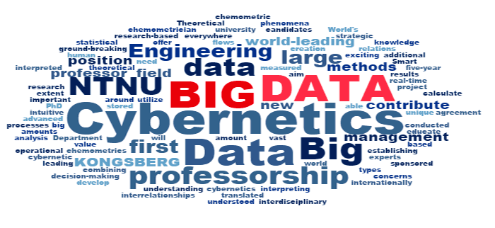 "NTNU and the Department of Engineering Cybernetics is the first university in the world to offer a professorship in Big Data Cybernetics, and ground-breaking, world-leading research will be conducted. This position will make us able to educate new types of candidates at NTNU for advanced, research-based value creation in Norway. "They will be experts on interpreting big data flows in real-time", says rector at NTNU, Gunnar Bovim.