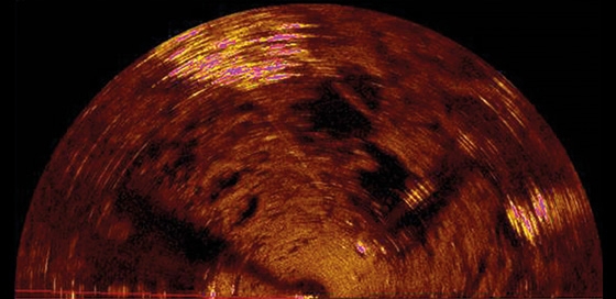 Deep water testing in the Gulf of Mexico has shown the clarity of images produced by the Clariscan compared to a standard 1171 domed sonar with composite transducer (see accompanying images). The two sonar heads were mounted side by side on the ROV (Remotely Operated Vehicle) and thus exposed to the same temperature, pressure and salinity conditions, and were operated simultaneously during image capture. The image quality of the Clariscan sonar unit is clearly superior, rivalling a high-resolution scanning sonar head.
