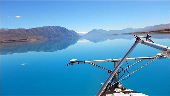The National Institute of Water and Atmospheric Research (NIWA) recently carried out a bathymetric and seismic survey of New Zealand's Lake Tekapo. The bathymetry data was acquired with a Kongsberg 0.4 x 0.7 degree EM2040 system.Due to the relatively remote location of Lake Tekapo, the EM2040 pod was fitted to a trailerable 6.8m monohull. A pivoting bow mounted deployment system was designed which allowed the EM2040 pod to be lowered into the water when on site with a high degree of repeatability. An Applanix POSMV system was used to provide position and attitude information with the antenna mounted directly above the EM2040 pod. The acquisition hardware (EM2040 transceiver, IMU etc.) was located in the forward cabin as close to the pod and antenna as possible so as to reduce any potential lever arm issues.
