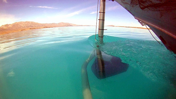 When the EM2040 system was deployed, the multibeam pod was 1 meter below the lake surface and stable at speeds of up to 7 knots surveying in water depths greater than 150m.