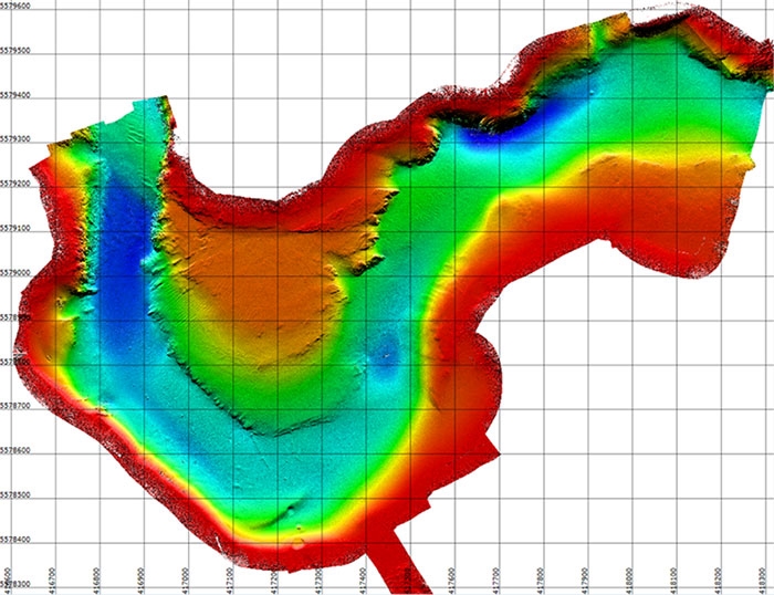 The system co-registers bathymetry and geo-referenced backscatter data in shallow water environments over a wide swath. During data acquisition, a procedure is followed to gather all necessary information to characterise the seabed response at the sonar frequency and to calibrate the transducers beamplots.