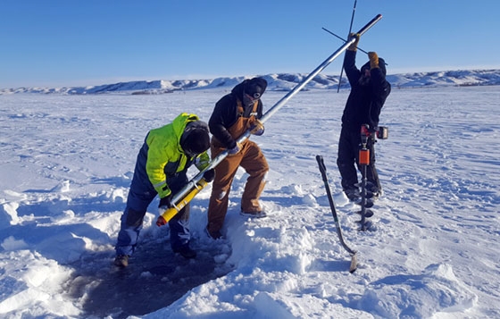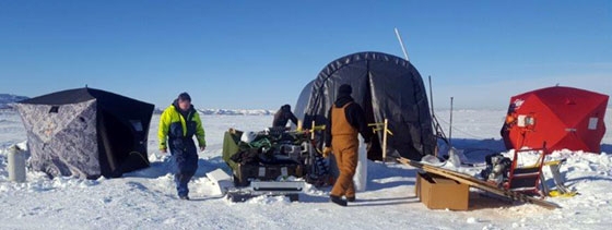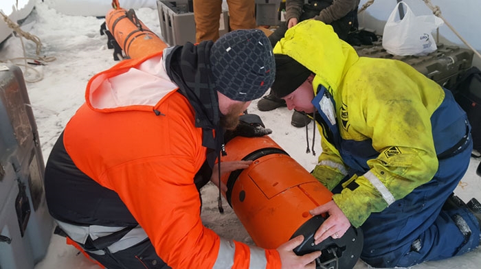 Using an air boat, all equipment was brought to the launch site and after only a few hours' assembly the vehicle was ready to be switched on to start mission planning. The aim to launch from an ice hole was challenging, as getting a launch and recovery unit onto the ice was not possible. Instead the operation was started by simply pressing the vehicle down into the water. 20 degrees of pitch at propeller spin up was enough for the vehicle to get into the water and follow the mission plan to conduct the survey.