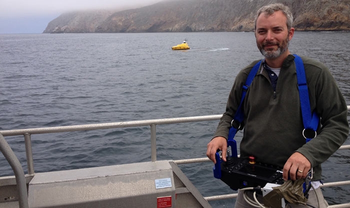 Marine Sanctuary (CINMS). Using an EM 2040P multibeam echo sounder mounted on an ASV, the team surveyed the seafloor along the edge of the islands coming within meters of steep cliffs. "The EM 2040P provided