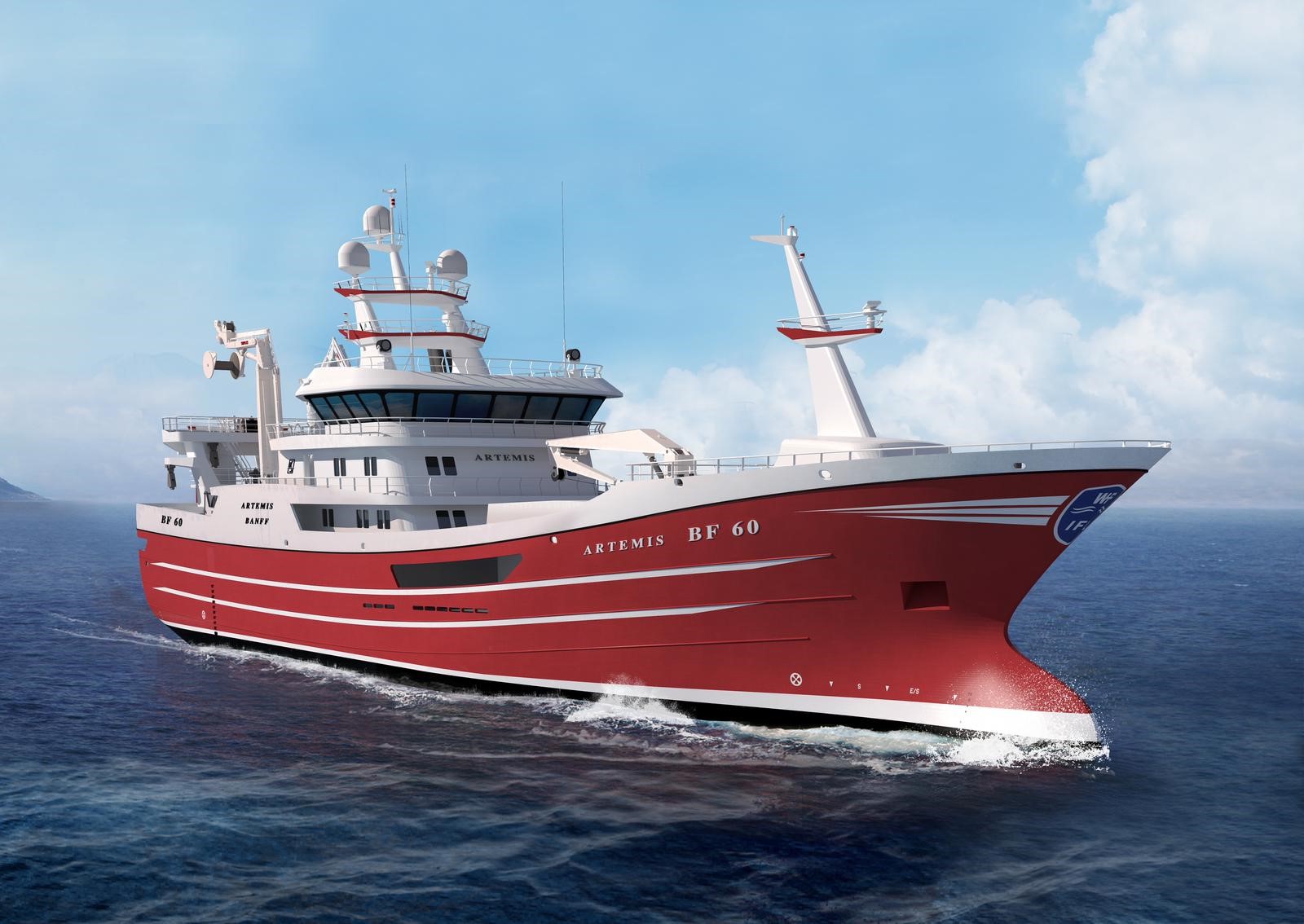 Artemis will also be fitted with a SIMRAD ES80 split-beam echosounder and fishfinder, FS70 third-wire trawl sonar to monitor net opening and fishing conditions, and the PX Multicatch trawl monitoring system. A Kongsberg Maritime MRU-S Motion Reference Unit completes the order, providing an accurate picture of roll, pitch, yaw and heave motion for enhanced sonar stabilisation, enabling a steady image of the target fish shoals even in rough weather conditions.