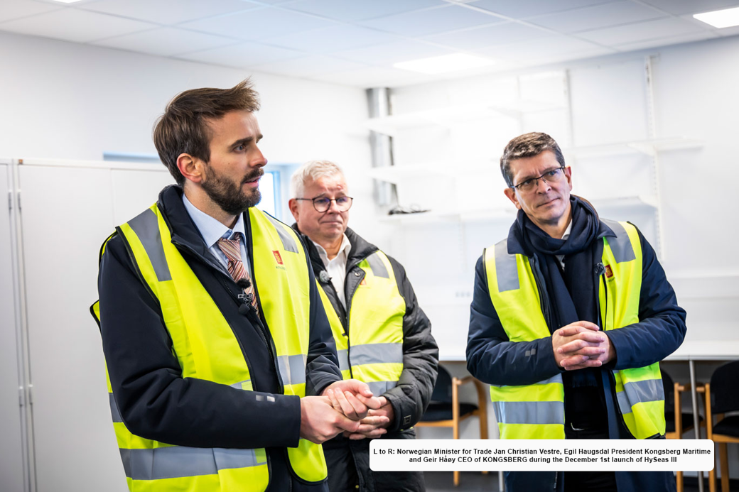 “The world looks to Norway for green and sustainable solutions at sea. What KONGSBERG and its partners have succeeded in achieving with this project is yet another proof of the internationally leading competence in the Norwegian maritime cluster. Now we have both taken the next step for solutions in Norway, and the next step for the Norwegian maritime industry to succeed in exporting hydrogen-based technology and solutions Internationally”. says Minister of Trade and Industry Jan Christian Vestre.