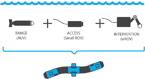 The narrow body of the vehicle also allows for transit over long distances like a cruising AUV (assuming the vehicle is tetherless and battery-powered). The vehicle therefore combines IMR capabilities of existing ROVs and the cruising and survey capabilities of existing AUVs. The flexibility of the vehicle and its ability to cover a large range of operational scenarios make it an ideal candidate for a subsea resident IMR solution. The main advantages of the vehicle concept are summarized in Fig. 2.