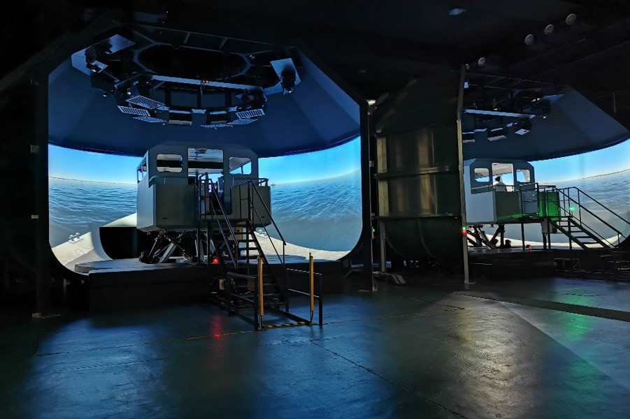 Along with the authenticity provided by the full motion platform, the simulator?s 270 HFOV (horizontal field of view), low-radius, cylindrical visual projection system also provides a large vertical field of view with extension panels for floor projection covering the hull sides, while the integrated physical bridge layout can accommodate genuine control and display apparatus such as navigation systems, engine start/stop switches and communications equipment to heighten the sensation of working in a complex onboard operating environment.