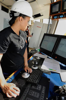 EVERYTHING HAS TO WORK: Jessica checks that all the electronic signals are functioning properly.