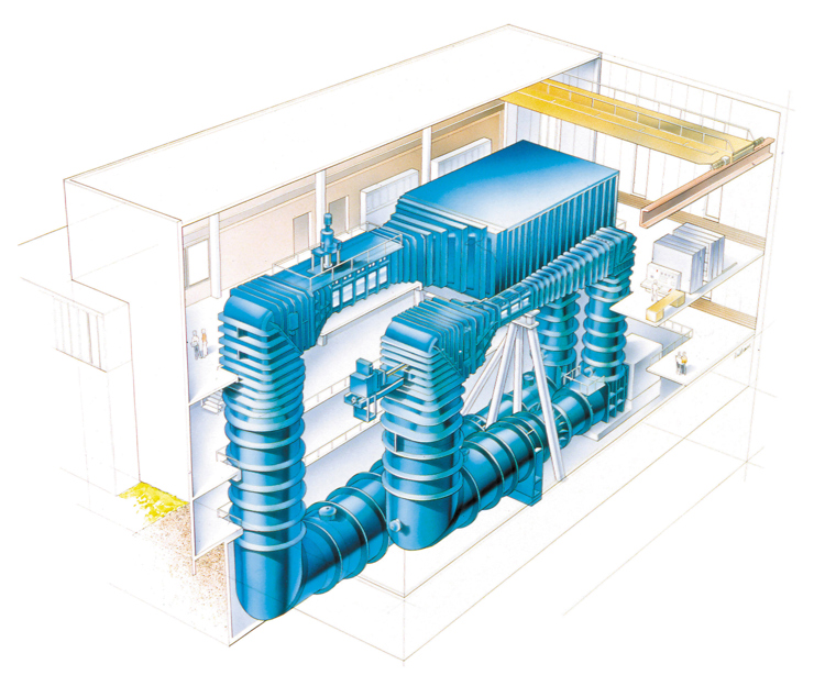 The second tunnel is used for testing propellers, waterjet pumps and thrusters in “open water conditions”, i.e. homogenous inflow with or without the effects of cavitation. The upstream drive unit is adapted for various shaft, hub and blade dynamometers, allowing measurement of torque and thrust of the entire propeller or, alternatively, forces acting on an individual blade.